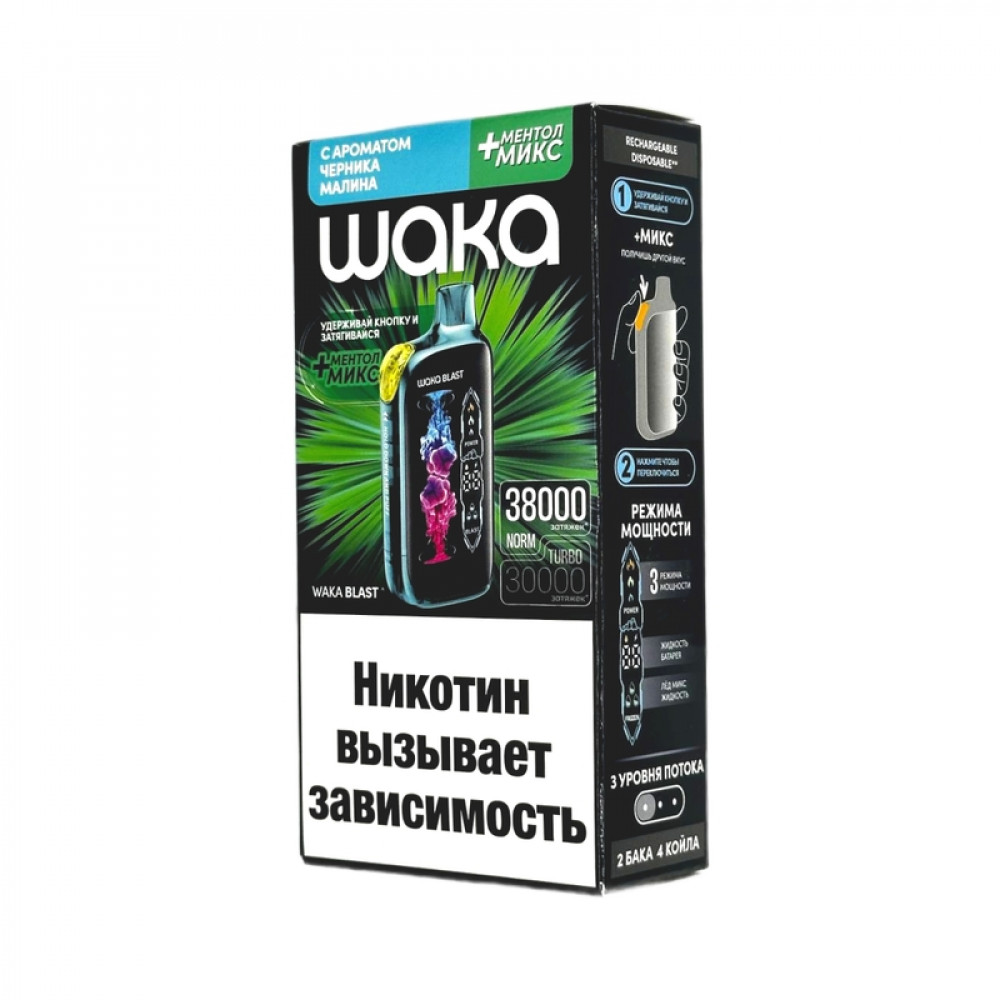 WAKA BLAST 38000 Hard - Черника малина + ментол микс - купить в Ступино